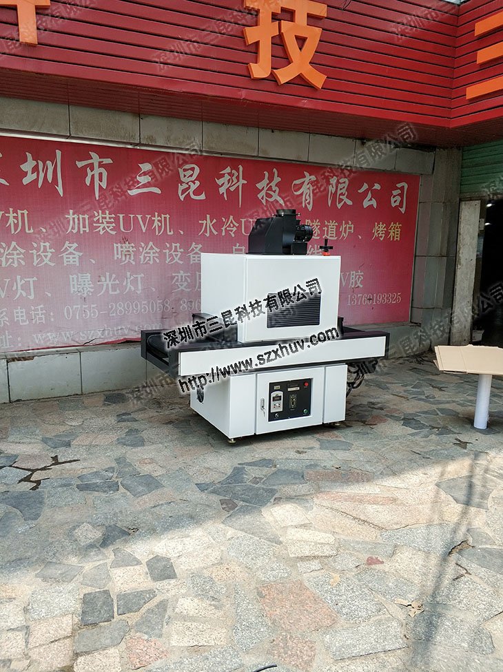 光固化機是利用UV光源來固化UV涂料的設備,如UV漆,UV油墨,UV膠等,與UV涂料里的光敏劑起化學反應,瞬間干燥固化。